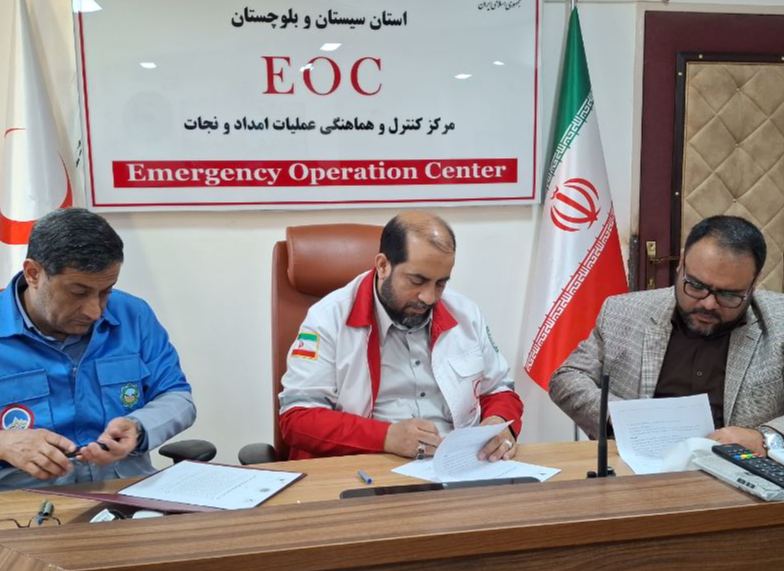 این تفاهم‌نامه با امضای «مجید محبی» مدیرکل مدیریت بحران استانداری سیستان و بلوچستان، «سید محمدمهدی سجادی» مدیرعامل جمعیت هلال‌احمر استان و «راشکی» رئیس هیئت مدیره و مدیرعامل شرکت شهرک‌های صنعتی سیستان و بلوچستان، در راستای اهداف مشترک بین بخش و طرح شده در «قرارگاه ایران‌من» منعقد گردید.